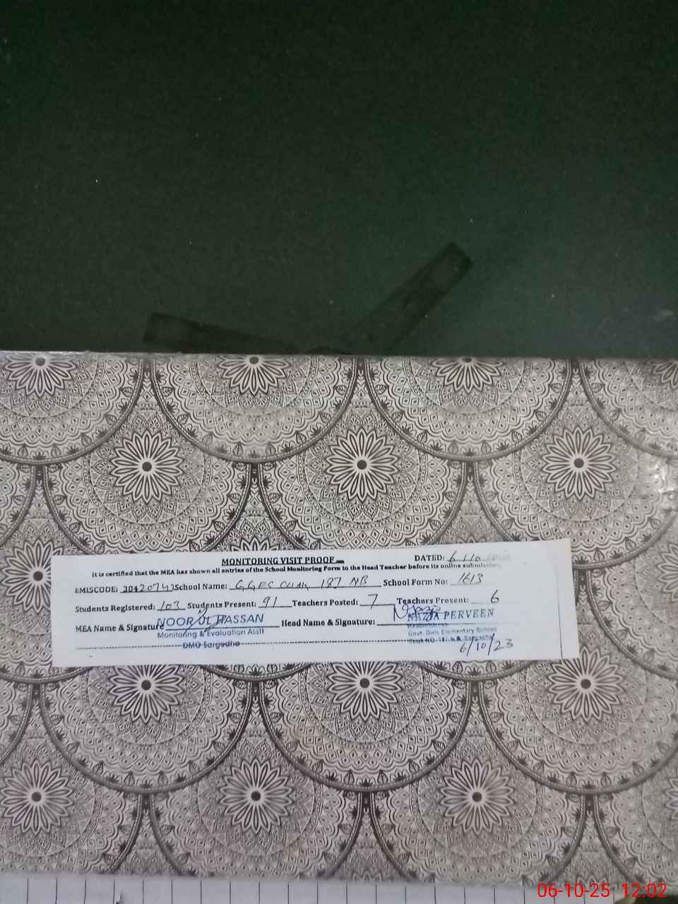 | Attendance Register | Head Teacher | MEA with School | Visit Proof |
