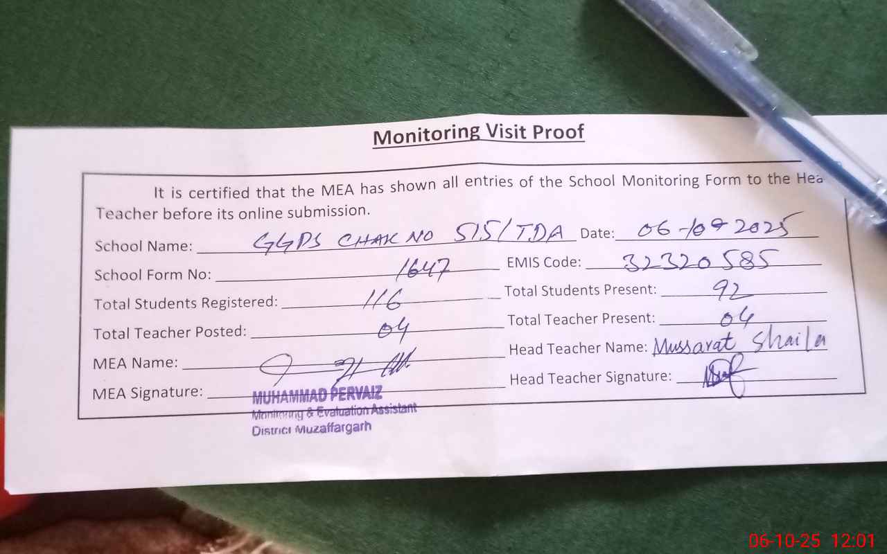 | EMIS Code: 32320585 | Name of School: GGPS CHAK NO. 515 TDA | |||