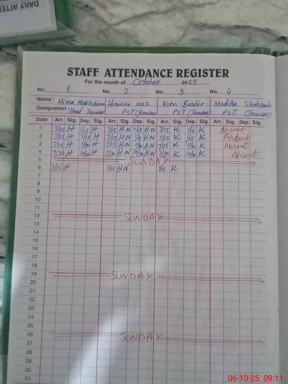 | 33**** | Ma**** Sh**** | 2 | 2 | 0 | 0 | 0 | 0 | 0 | 0 | 0 | 0 | 0 | Absent (Un-Authorized) |