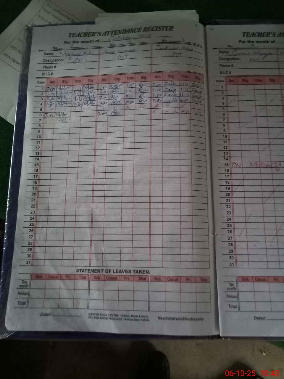 | 33**** | Su**** Ma**** | PST | Regular | 0 | 0 | 0 | 0 | 0 | 0 | 0 | 0 | 0 | Maternity |