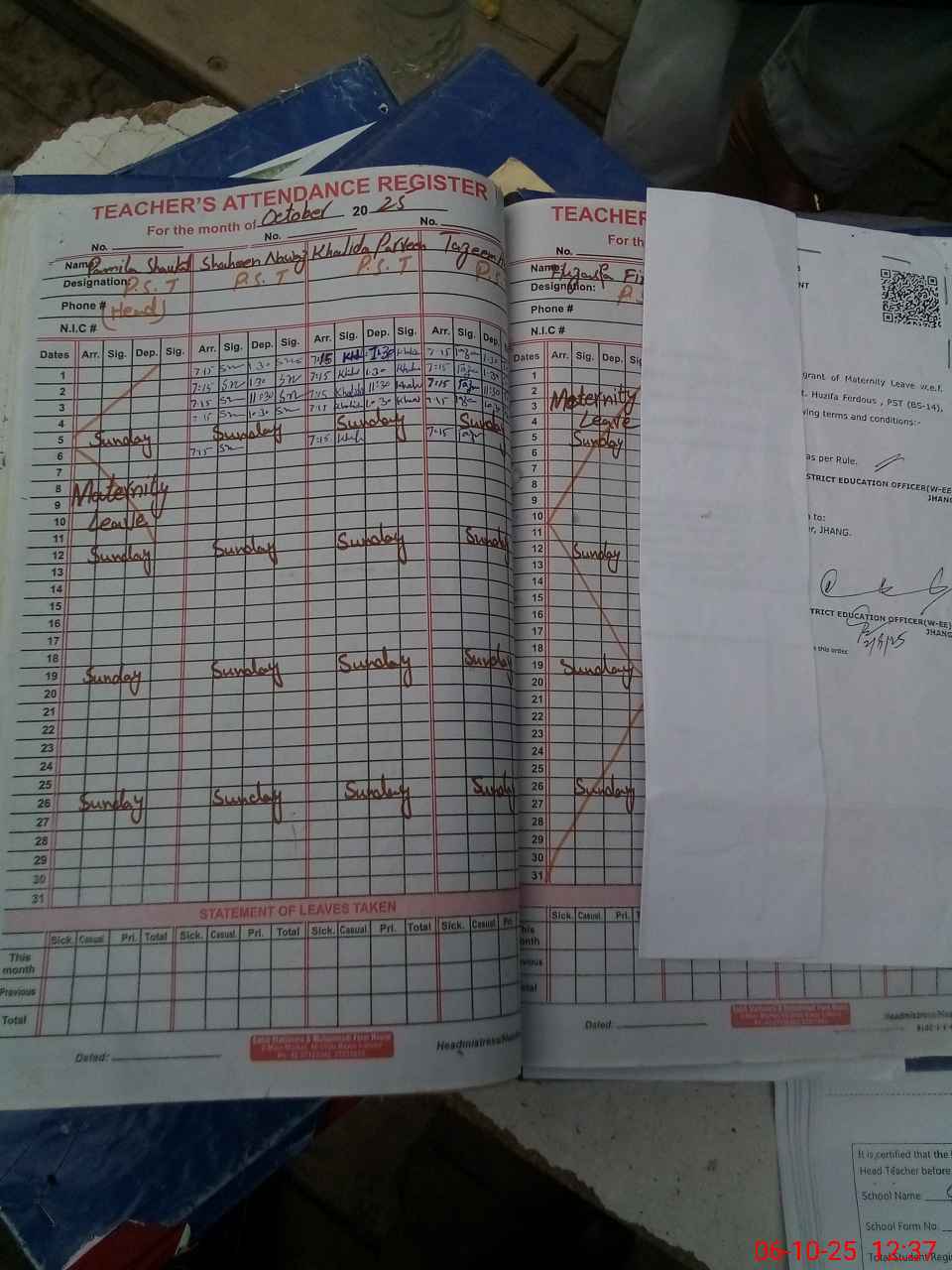 | Name: PA**** SH**** Designation: (School Headmaster's/Headmistress's) PST Phone/Cell Number: 03**** |