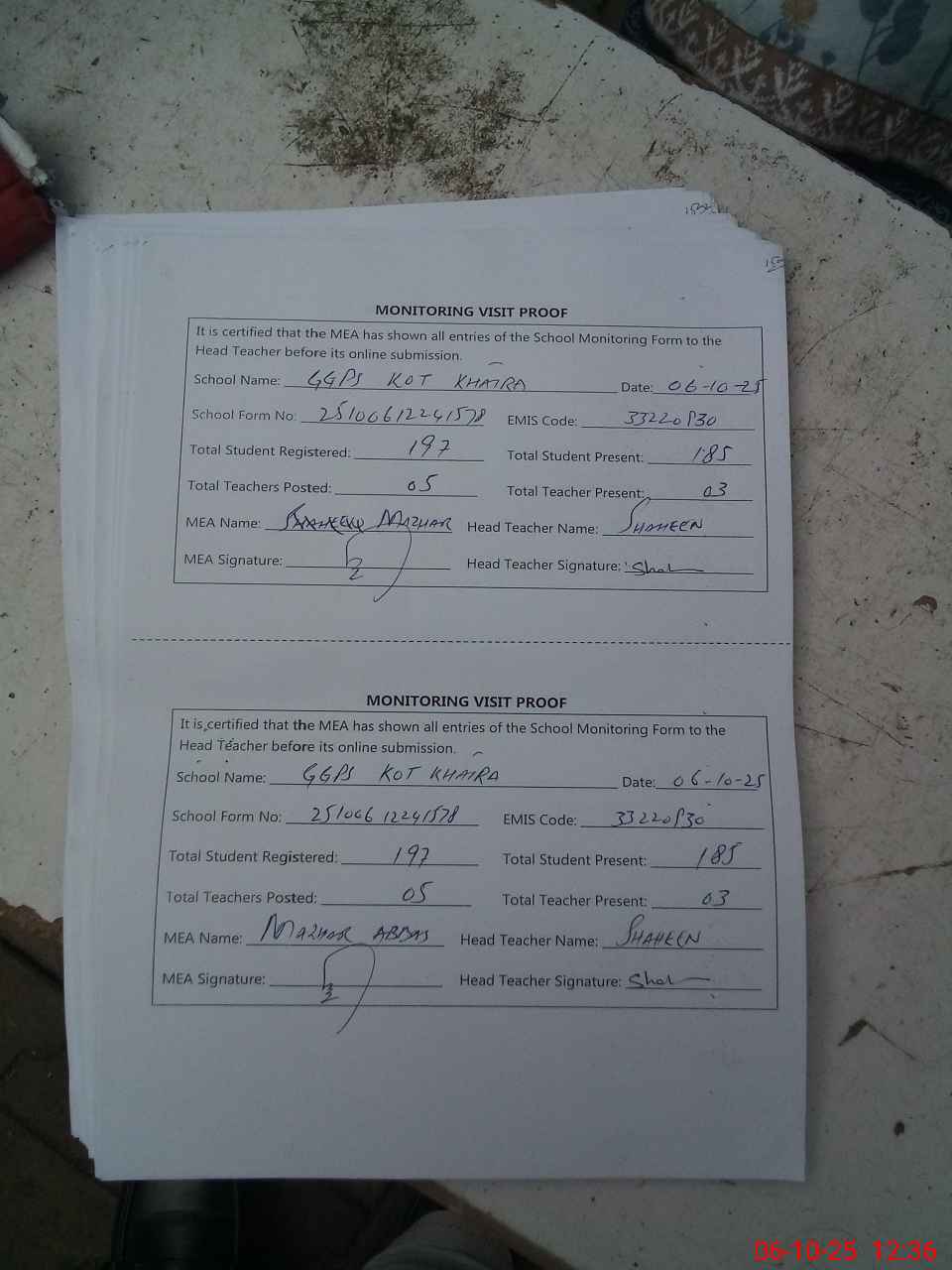 | EMIS Code: 33220930 | Name of School: GGPS KOT KHAIRA | |||