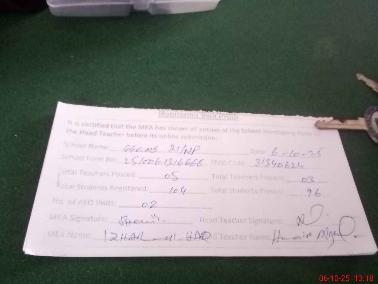 | Monitoring Date: 06-10-2025 | Start Time: 06-10-2025 12:31 PM | End Time: 06-10-2025 01:19 PM | Name of MEA: Mu**** Iz**** UlHa**** | |