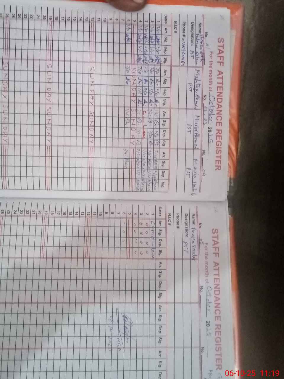 | CNIC | Full Name | Designation | R/C | Absence during last cal. month |