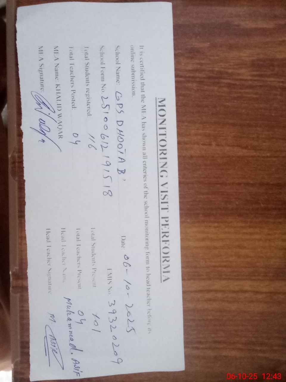 | EMIS Code: 39320209 | Name of School: GPS DHOOTA | |||