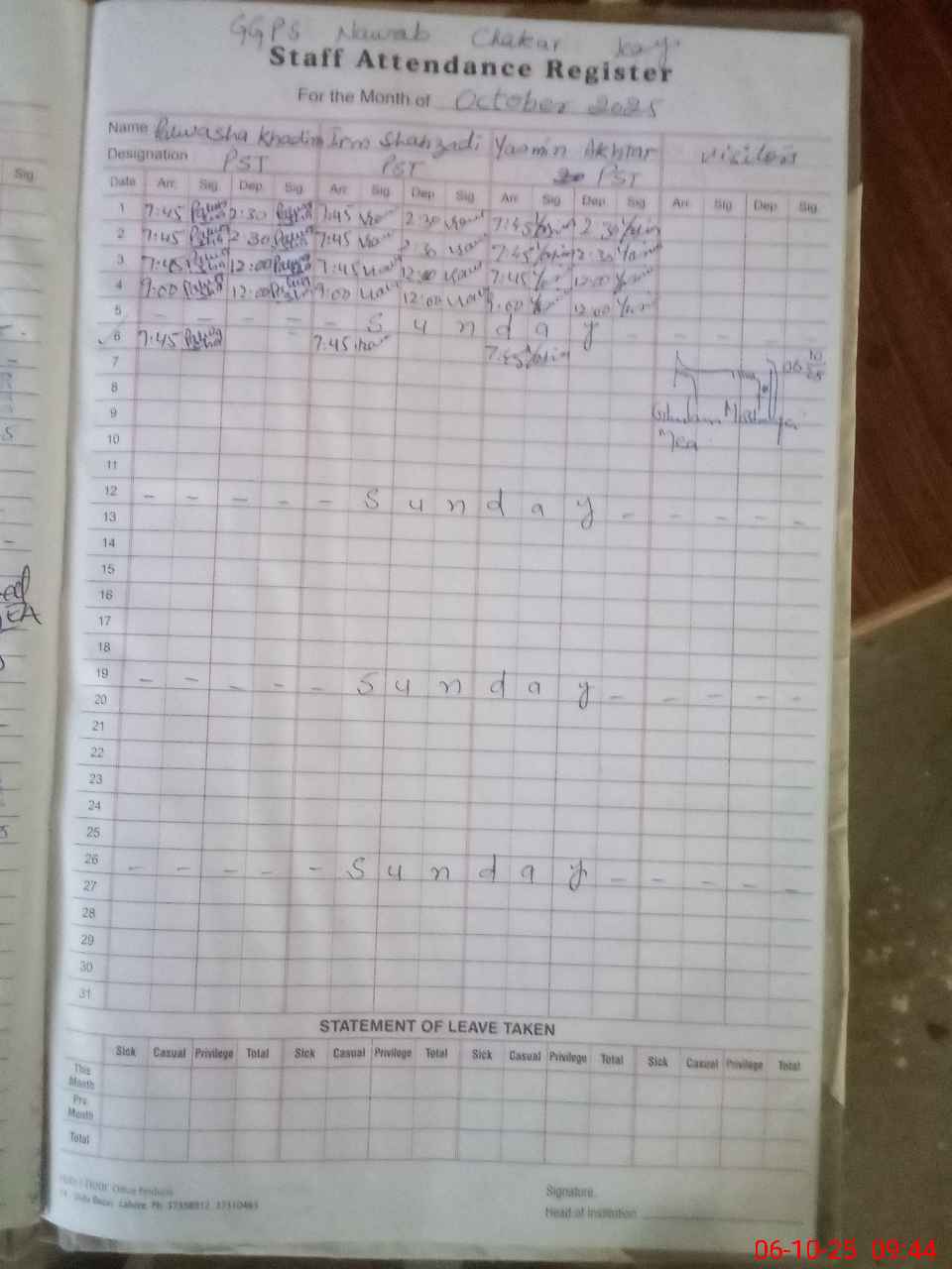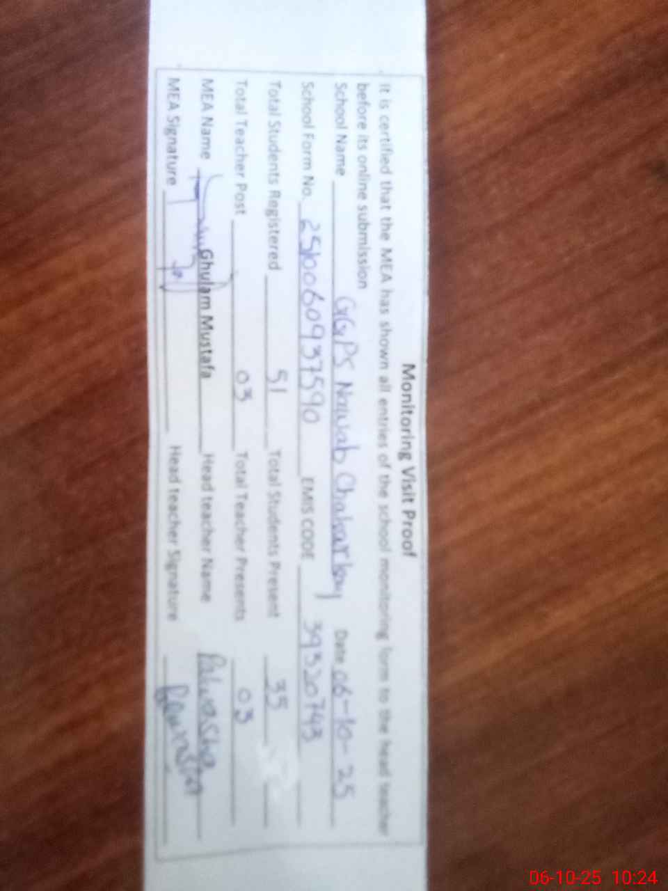 | EMIS Code: 39320743 | Name of School: GGPS NAWAB CHAKAR KAY | |||