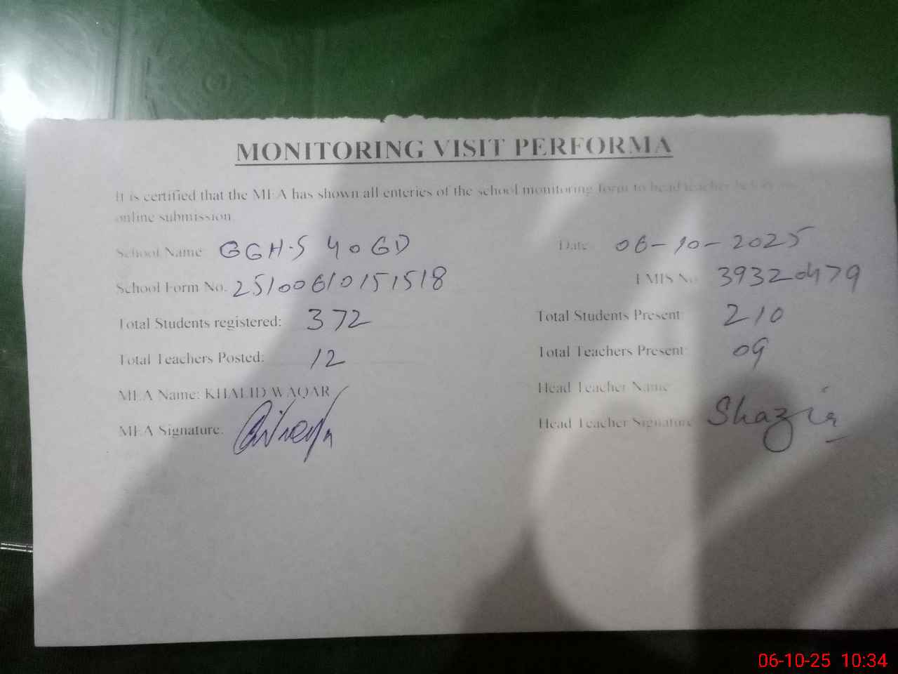 | EMIS Code: 39320479 | Name of School: GGHS 40/G.D | |||