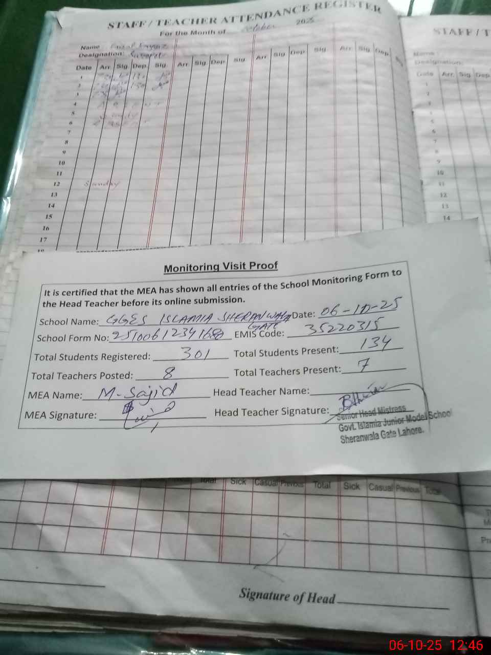 | EMIS Code: 35220315 | Name of School: GGES ISLAMIA JUNIOR MODEL SHERAN WALA GATE | |||