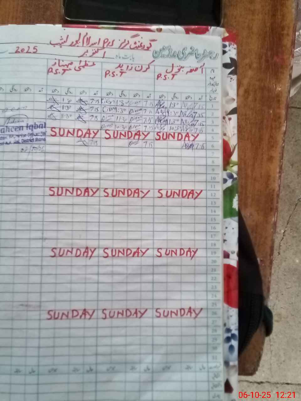 | Name: AS**** BA**** Designation: (School Headmaster's/Headmistress's) PST Phone/Cell Number: 03**** |