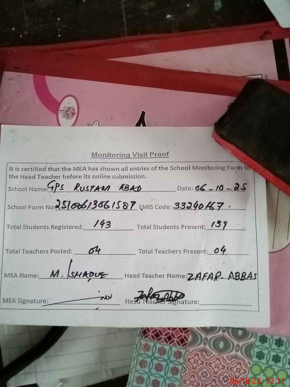 | EMIS Code: 33240167 | Name of School: GPS RUSTAM ABAD | |||