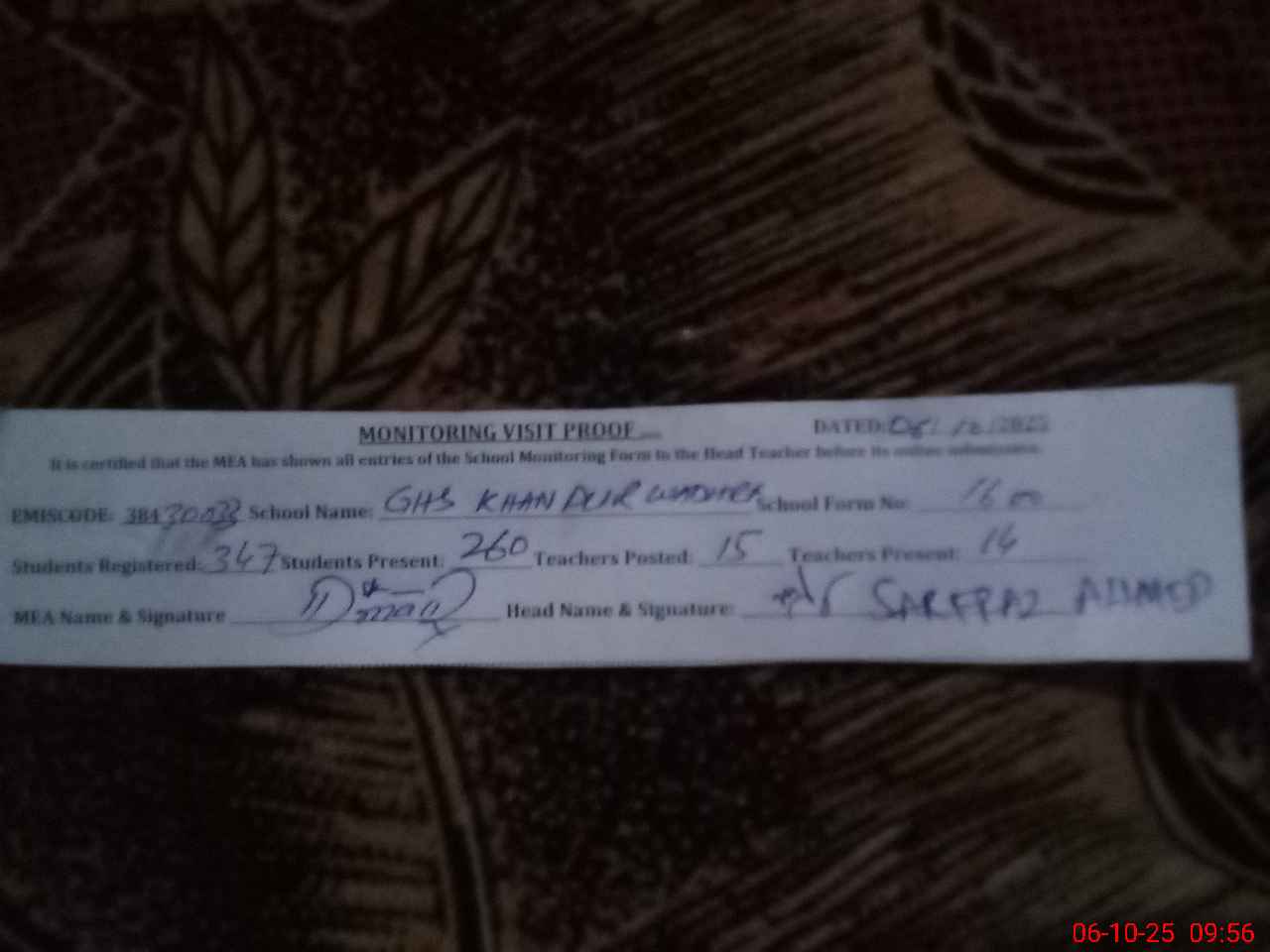 | EMIS Code: 38430033 | Name of School: GHS KHAN PUR WADRA | |||