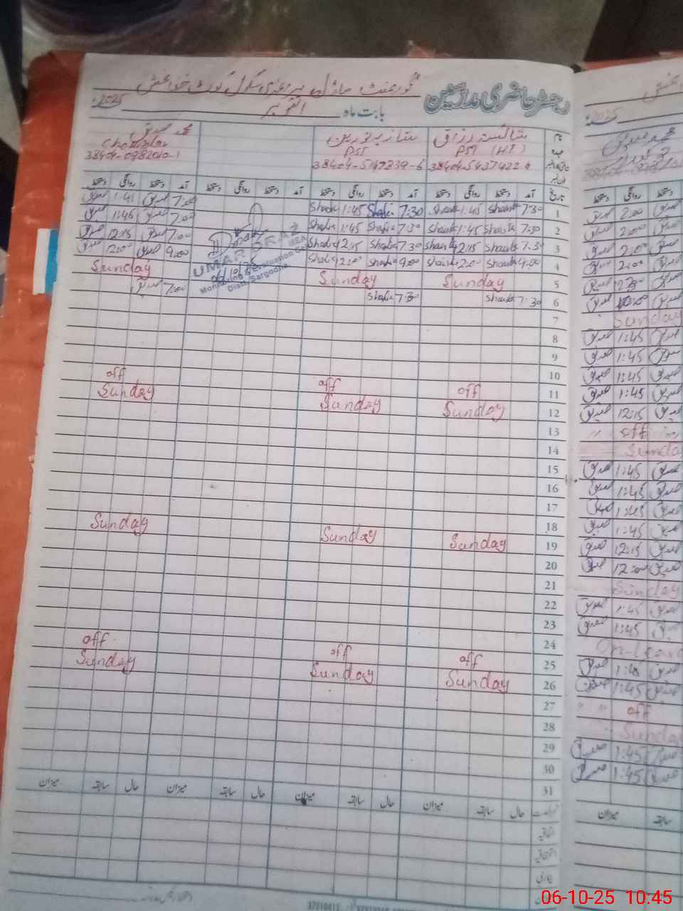 | Name: SH**** RA**** Designation: (School Headmaster's/Headmistress's) PST Phone/Cell Number: 03**** |