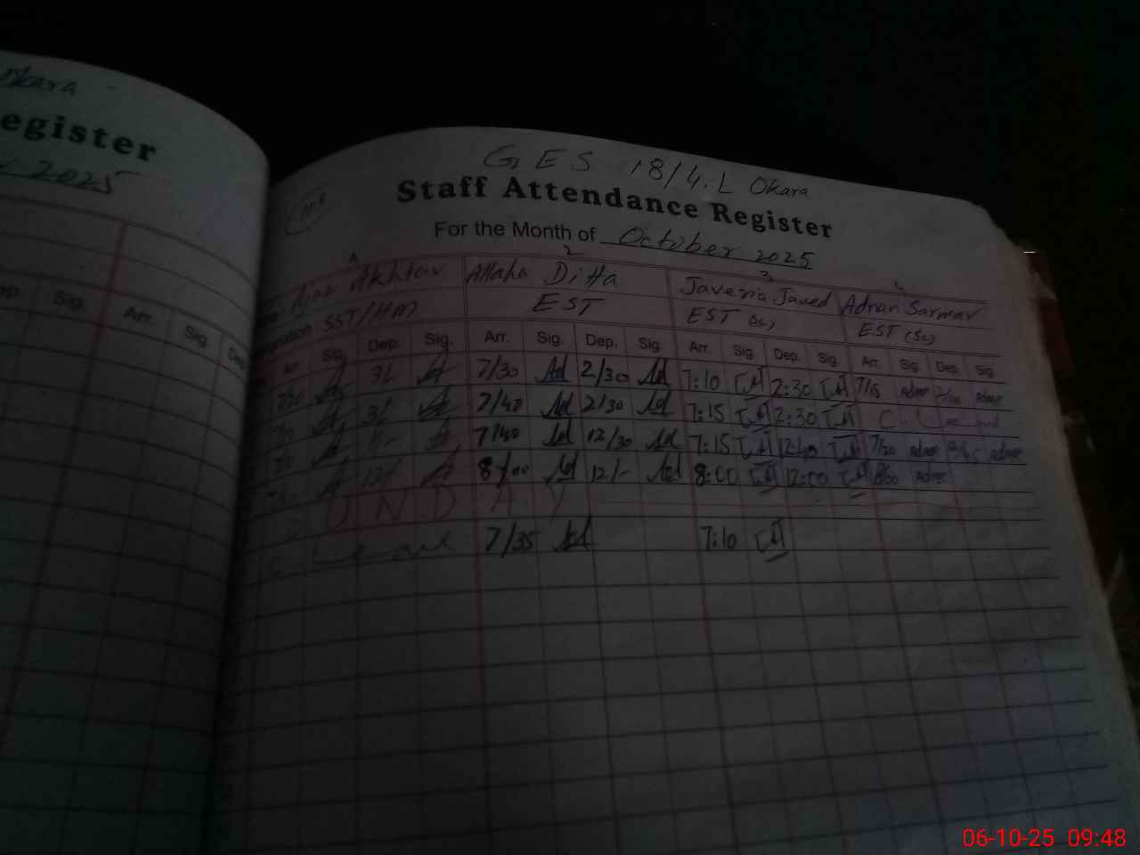 | Monitoring Date: 06-10-2025 | Start Time: 06-10-2025 09:30 AM | End Time: 06-10-2025 10:37 AM | Name of MEA: MU**** TA**** | |