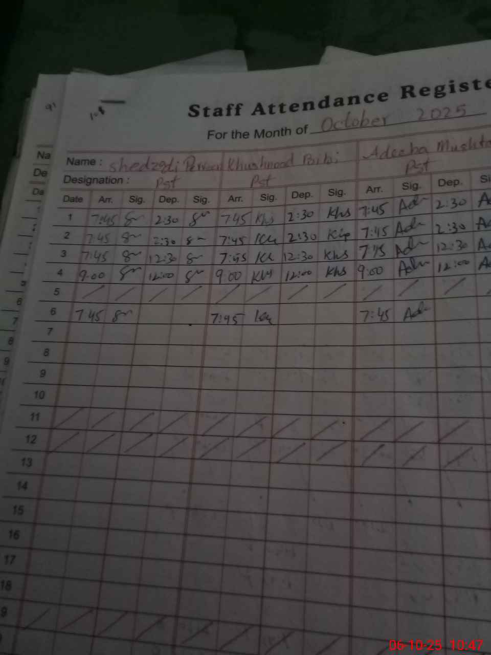 | Name: RU**** BE**** Designation: (School Headmaster's/Headmistress's) S.S.T.(Arts) Phone/Cell Number: 03**** |