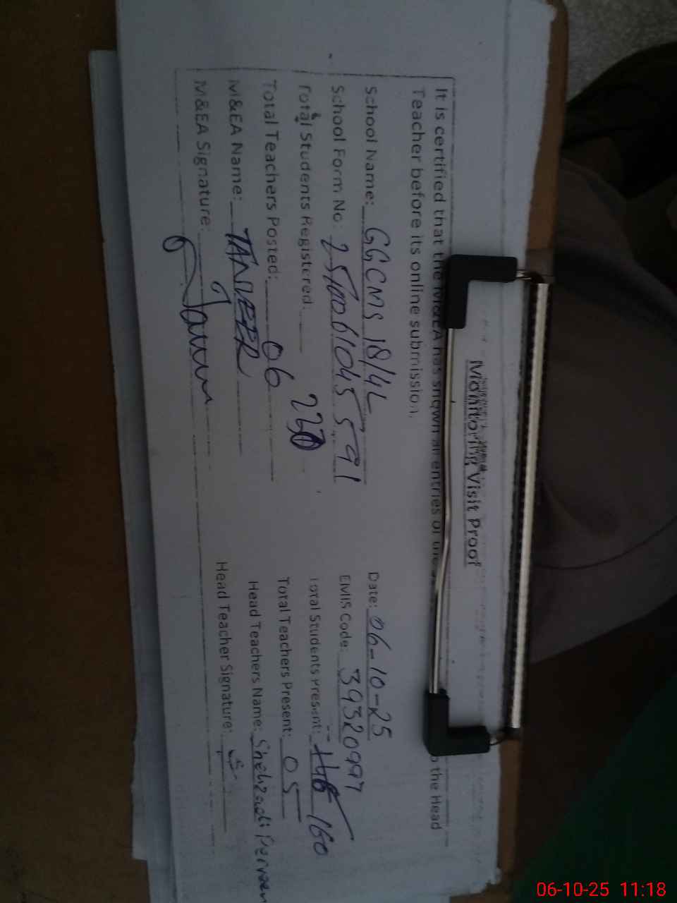 | Certified that this School was Inspected by the Undersigned MEA/DMO Today and the Information Stated Above is as Per Record. | |||||