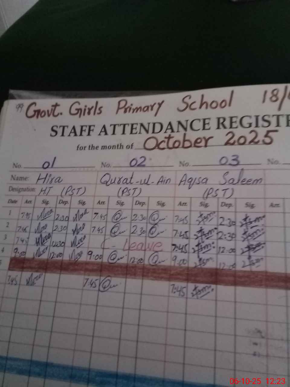 | Name: Hi**** Designation: (School Headmaster's/Headmistress's) PST Phone/Cell Number: 03**** |