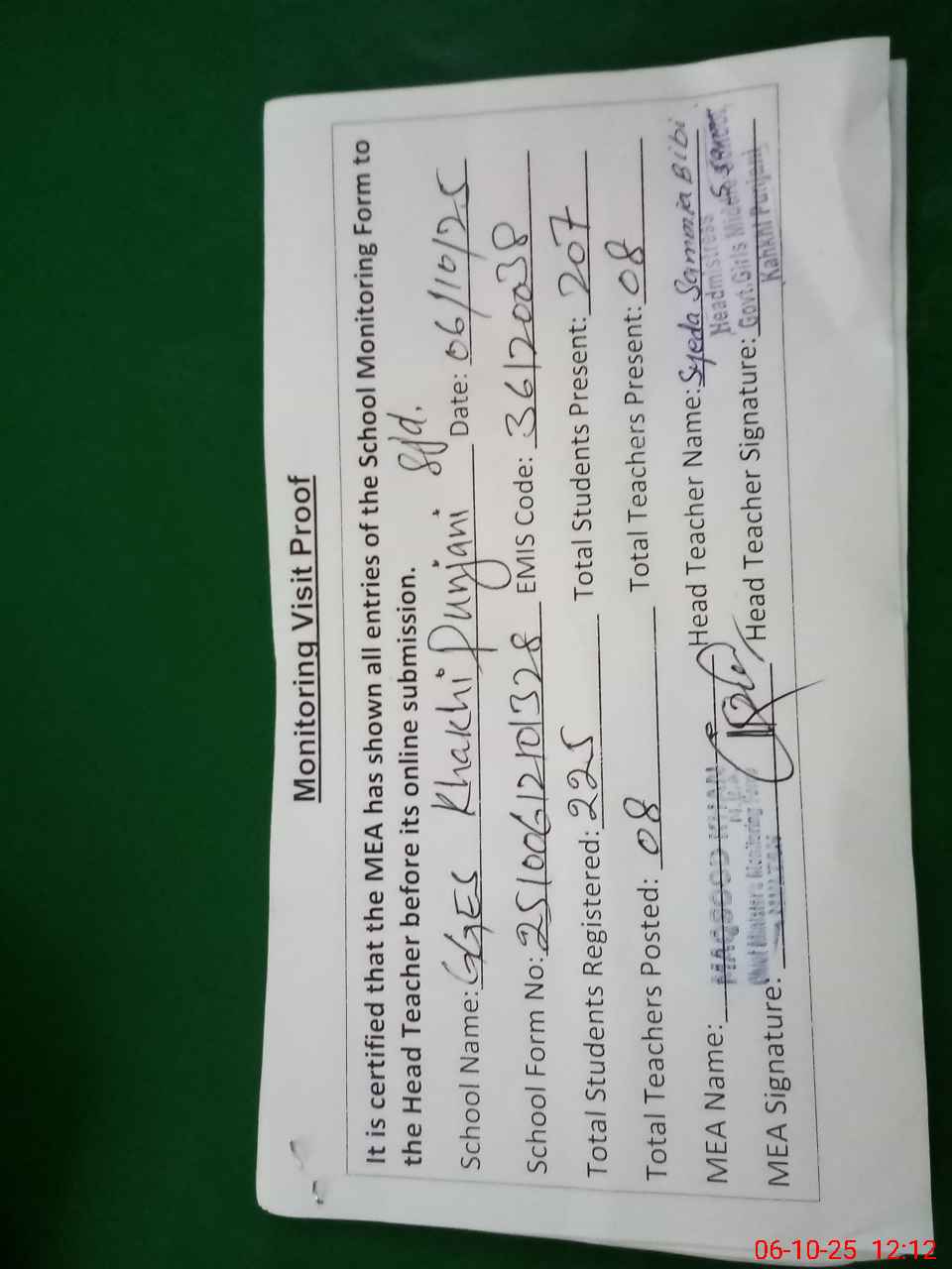 | EMIS Code: 36120038 | Name of School: GGES KHAKHI PUNJANI SHUJABAD | |||