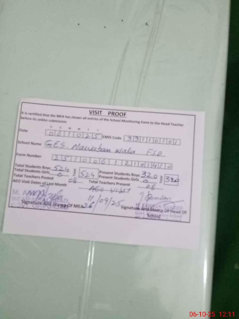| EMIS Code: 33110101 | Name of School: GES MC NAWABAN WALA FSD | |||