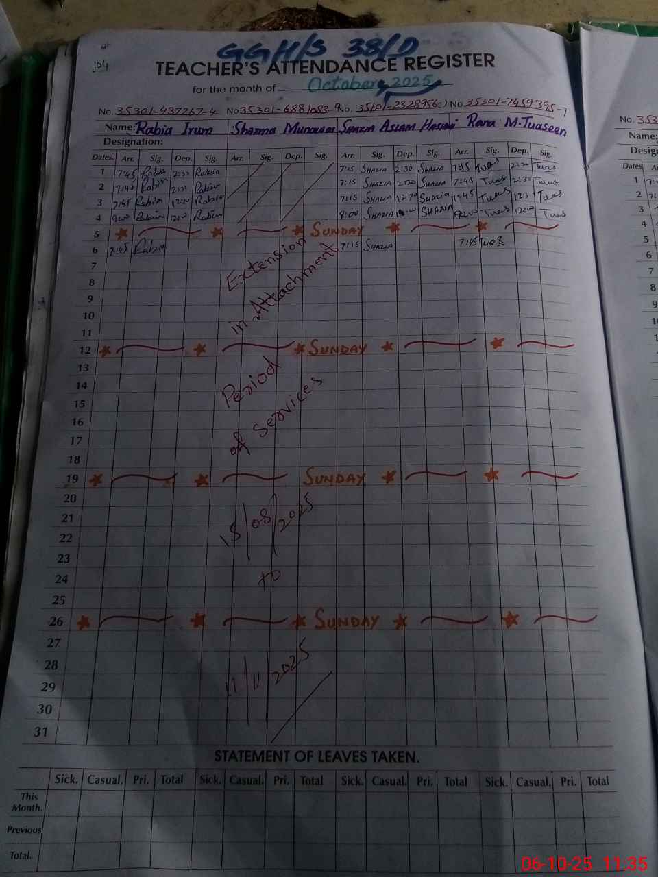 | 35**** | Uz**** Ba**** | NAIB QASID | Regular | 2 | 0 | 0 | 0 | 0 | 0 | 0 | 0 | 2 | Casual |