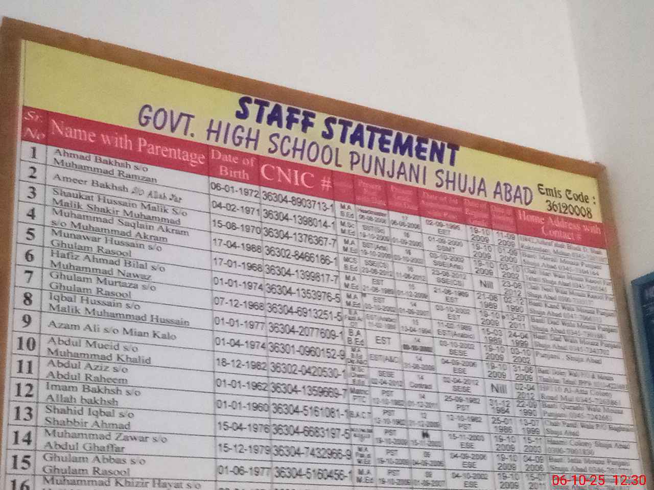 | Name: AH**** BA**** Designation: (School Headmaster's/Headmistress's) HEADMASTER Phone/Cell Number: 03**** |