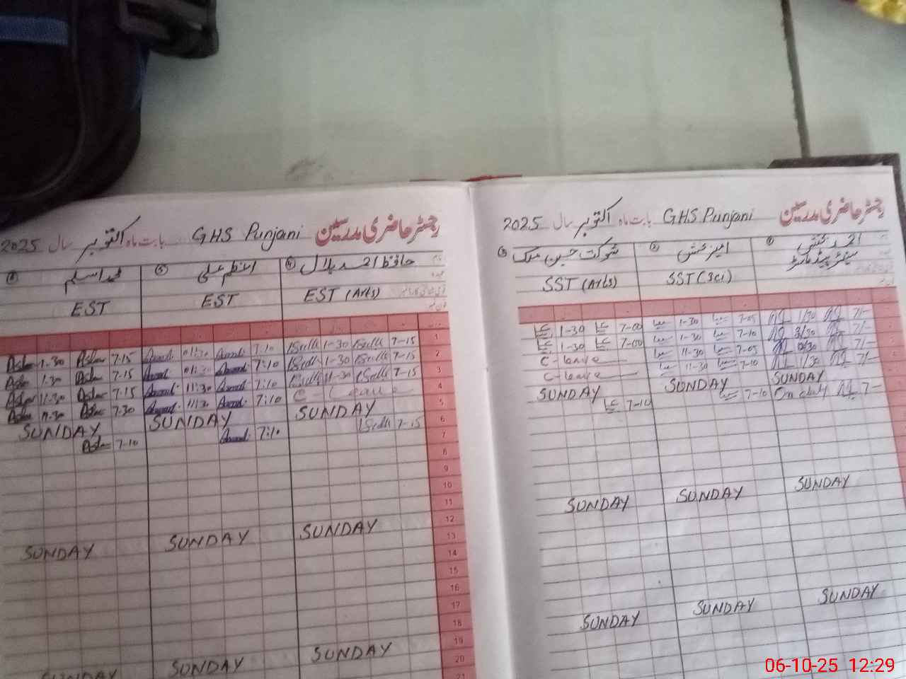 | CNIC | Full Name | Designation | R/C | Absence During Last Calender Month |