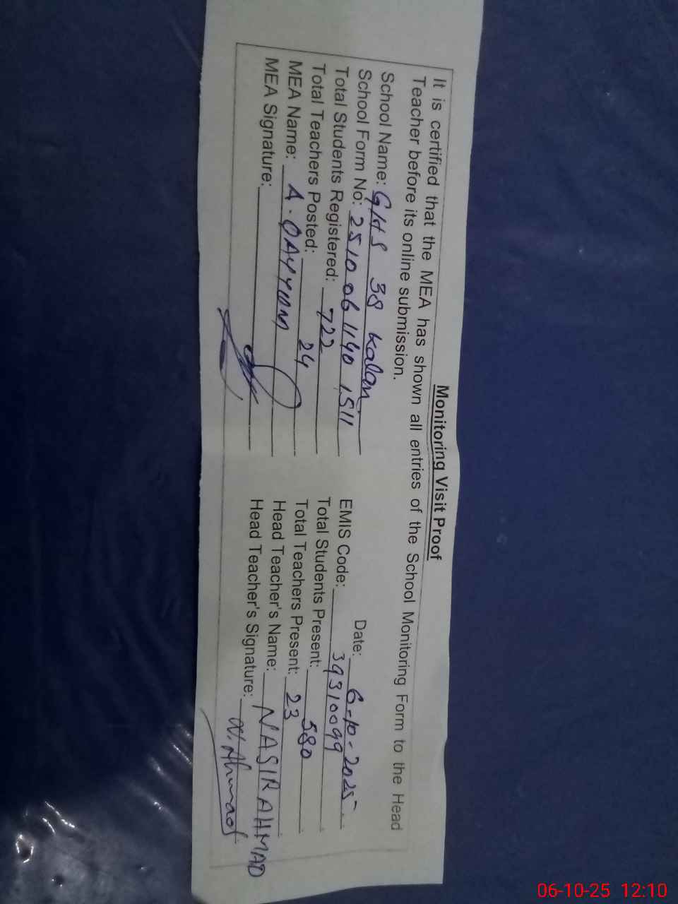 | EMIS Code: 39310099 | Name of School: GHS CHAK 38-D KALAN | |||