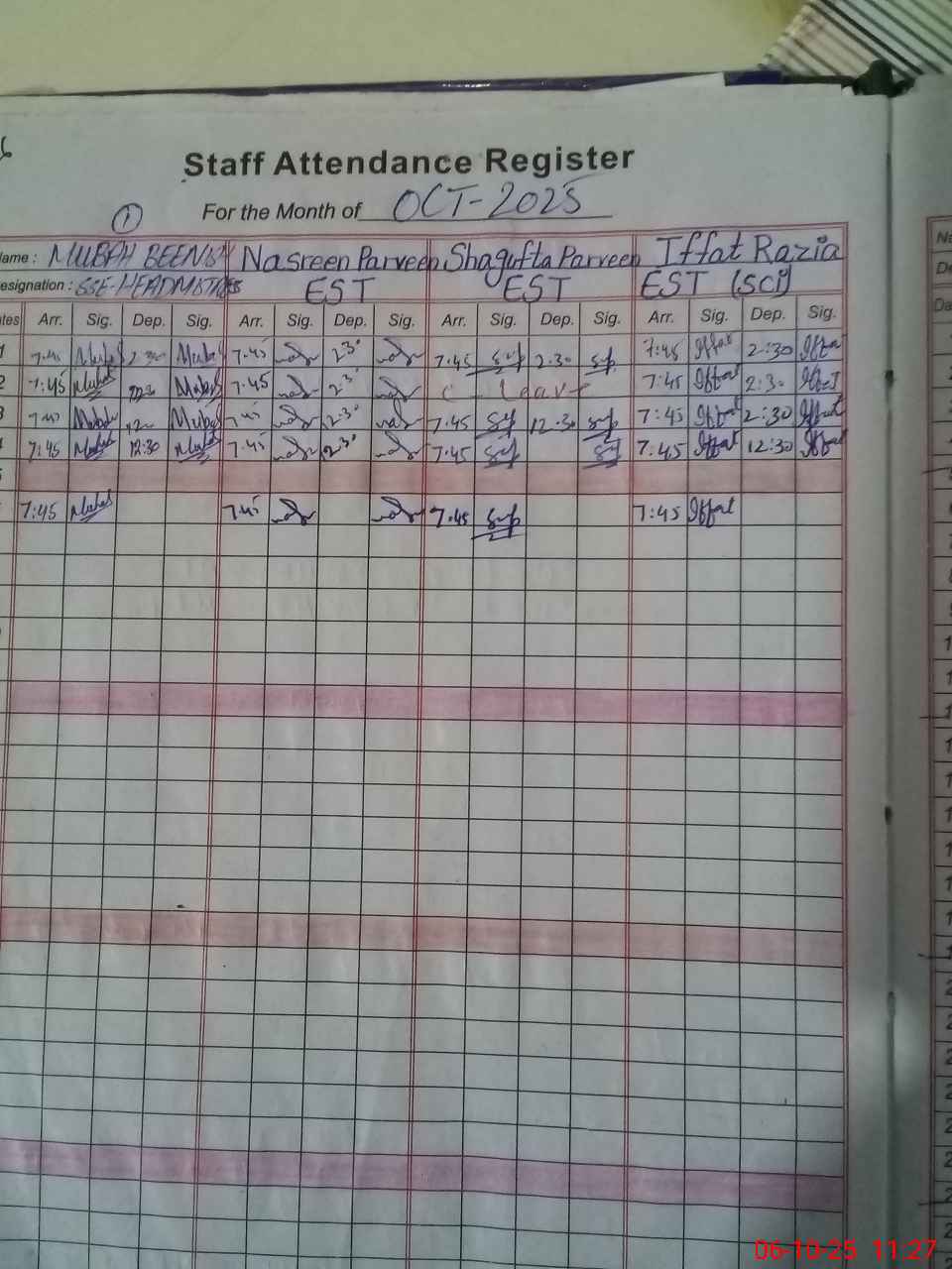 | Monitoring Date: 06-10-2025 | Start Time: 06-10-2025 11:22 AM | End Time: 06-10-2025 12:56 PM | Name of MEA: IL**** AH**** | |