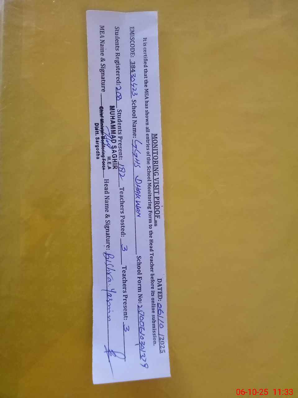| EMIS Code: 38430423 | Name of School: GGHS DHAKWAN SHAHPUR | |||