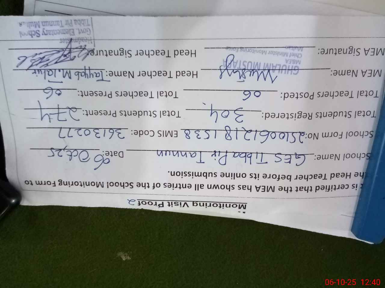 | Monitoring Date: 06-10-2025 | Start Time: 06-10-2025 12:18 PM | End Time: 06-10-2025 12:41 PM | Name of MEA: Gh**** Mu**** | |