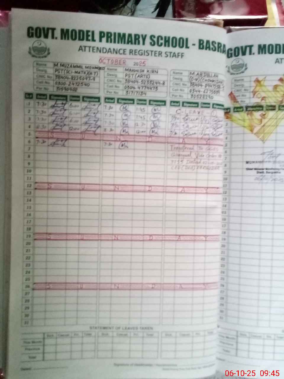 | Name: MU**** MU**** Designation: (School Headmaster's/Headmistress's) PST Phone/Cell Number: 03**** |