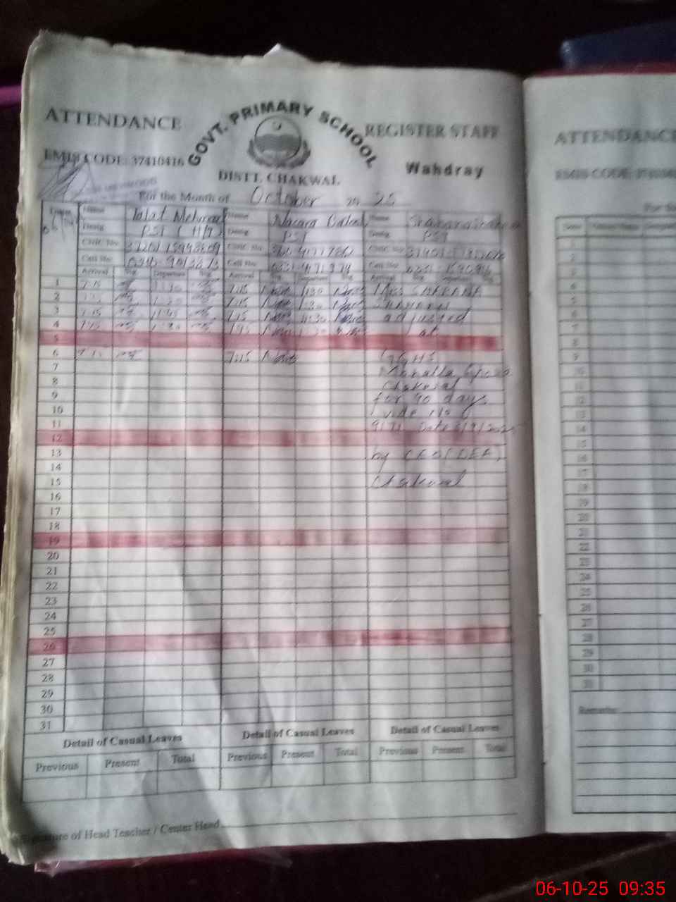 | District: CHAKWAL | Tehsil: CHAKWAL | Markaz: DHUDIAL-MALE | Level: Primary | |