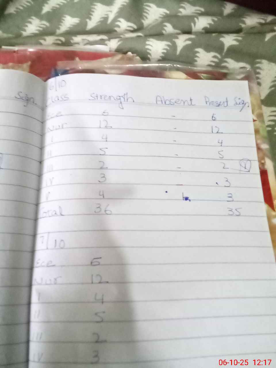| Total Students Present | 6 | 0 | 12 | 4 | 5 | 2 | 2 | 4 | 35 | |||||||