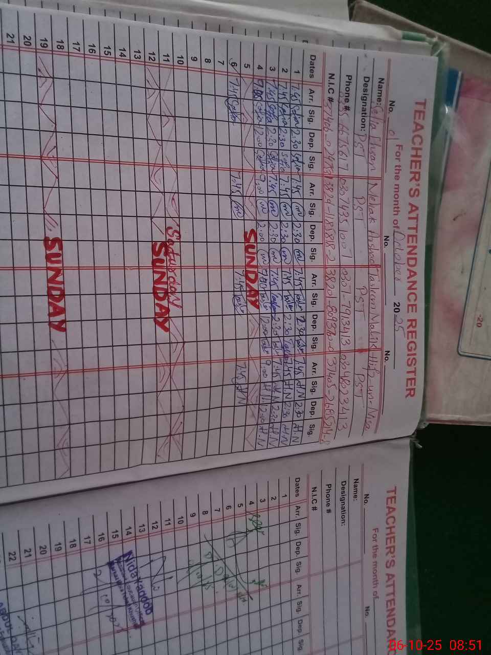 | Name: SA**** EH**** Designation: (School Headmaster's/Headmistress's) PST Phone/Cell Number: 03**** |