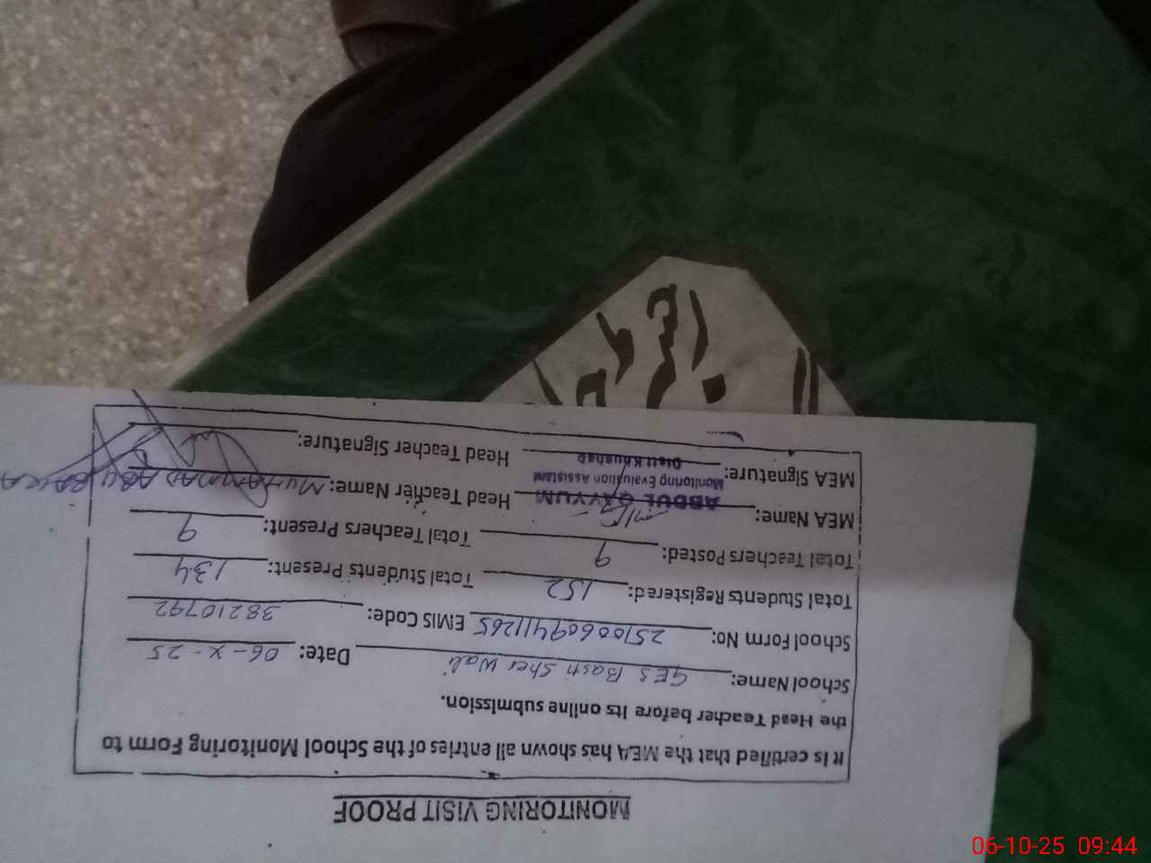 | EMIS Code: 38210792 | Name of School: GES BASTI SHER WALI | |||