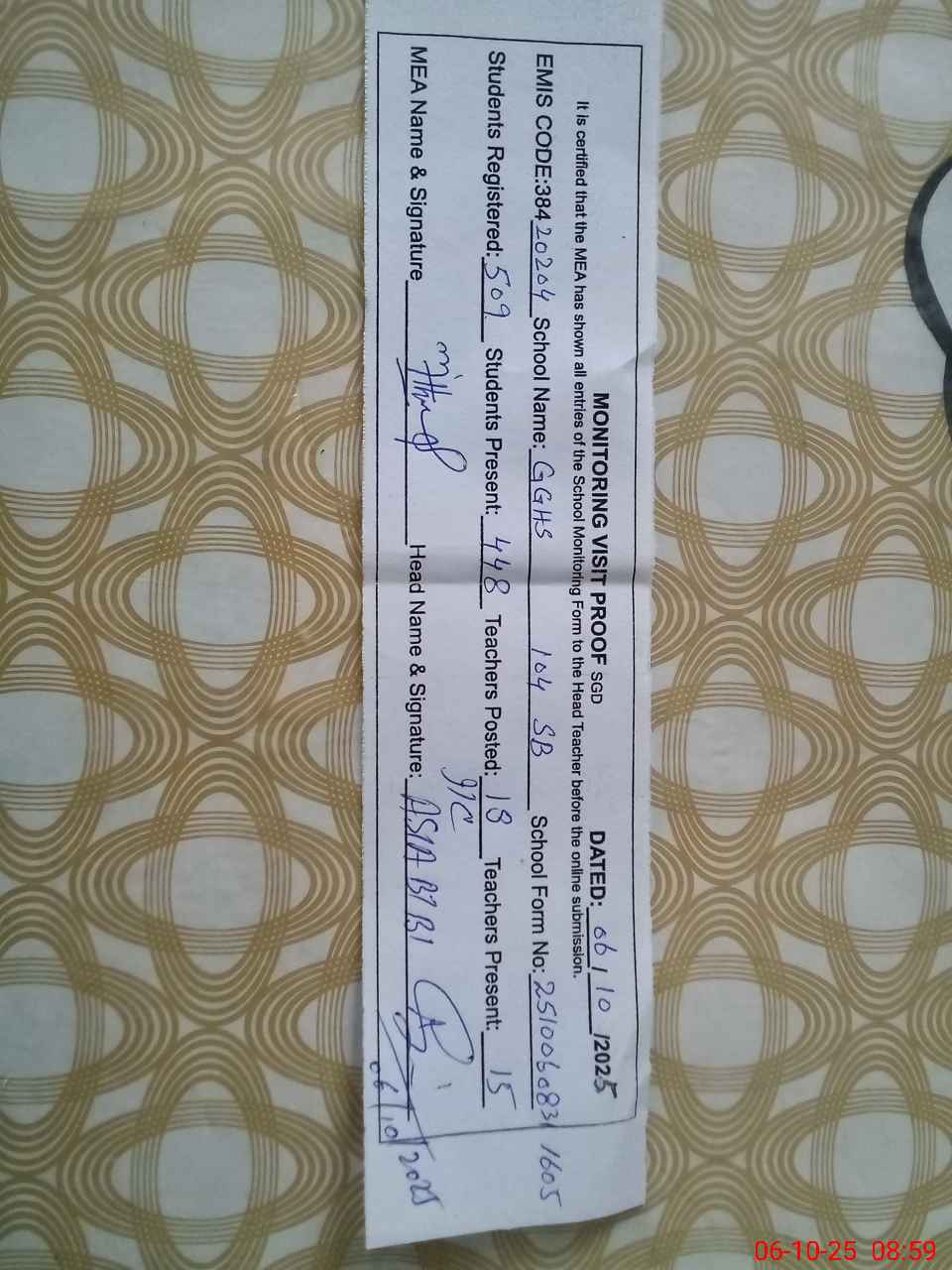 | EMIS Code: 38420204 | Name of School: GGHS CHAK NO.104 SB | |||