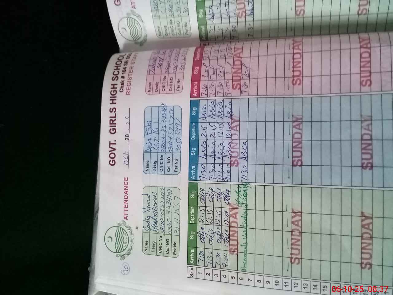 | Name: SA**** AH**** Designation: (School Headmaster's/Headmistress's) HEADMISTRESS Phone/Cell Number: 03**** |