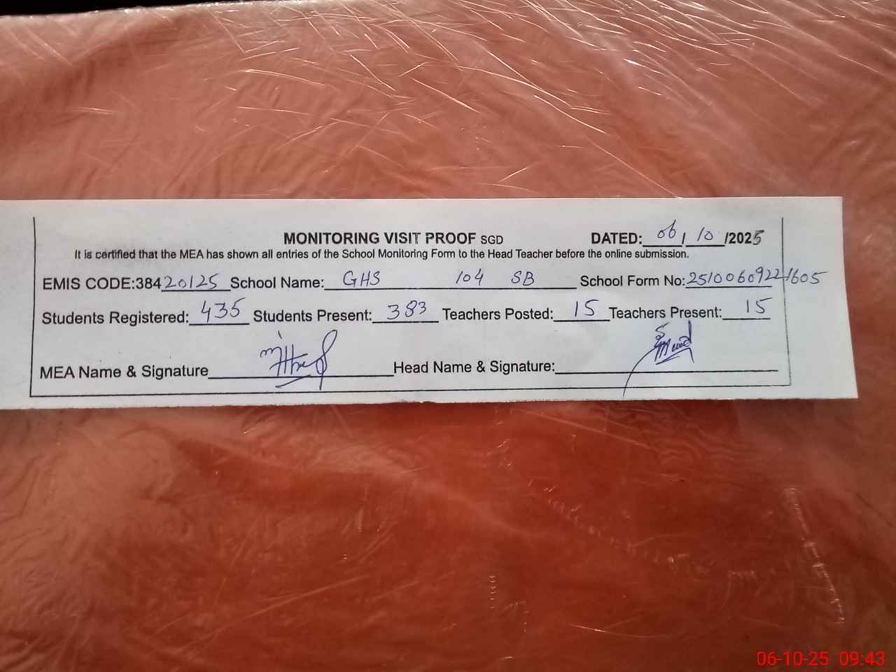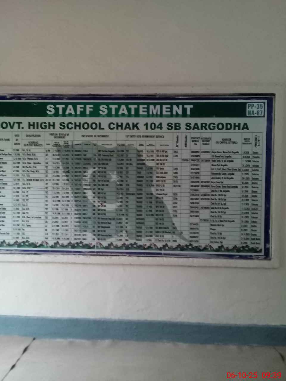 | EMIS Code: 38420125 | Name of School: GHS CHAK NO.104 SB | |||