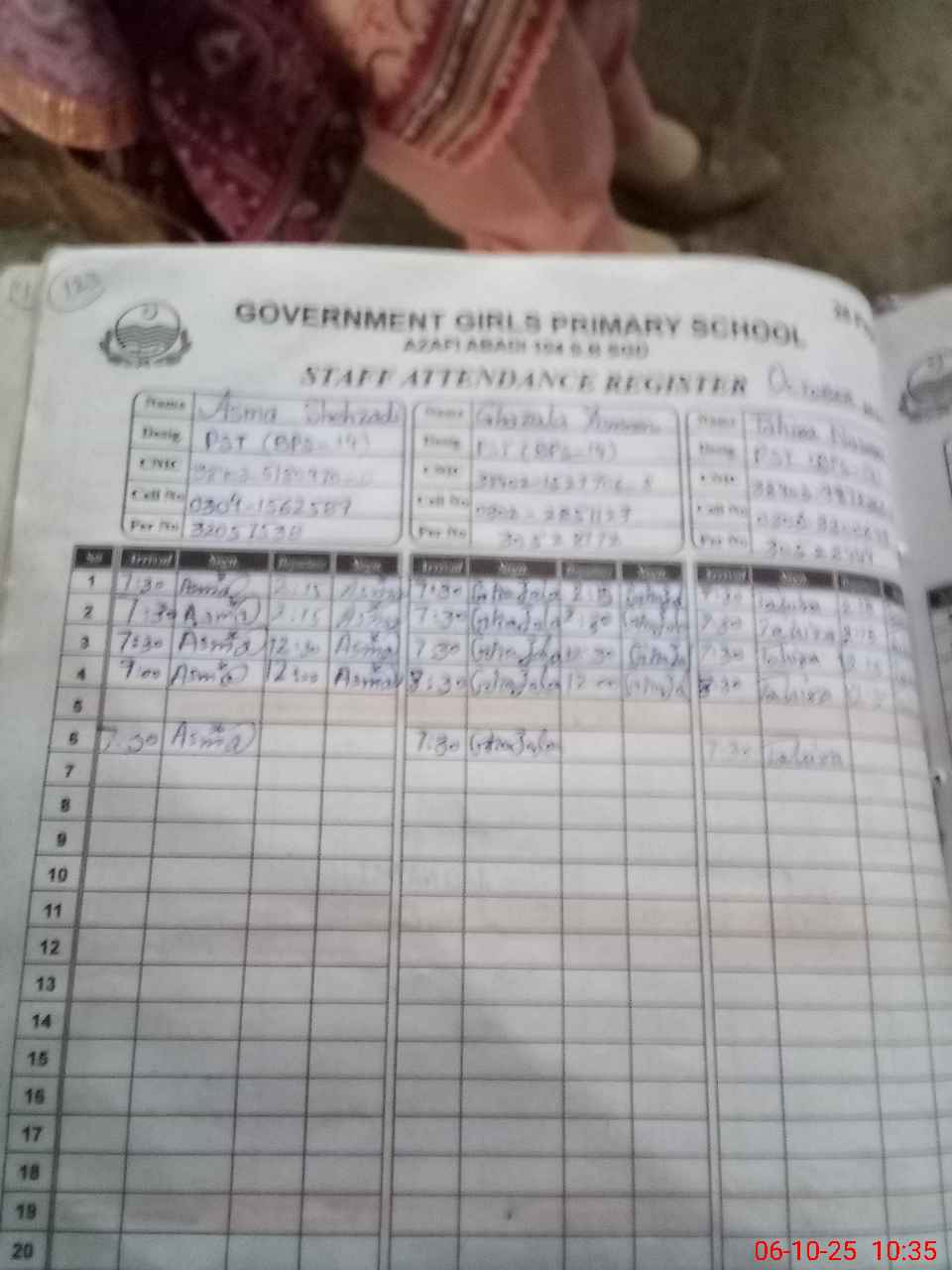 | Name: As**** Sh**** Designation: (School Headmaster's/Headmistress's) PST Phone/Cell Number: 03**** |