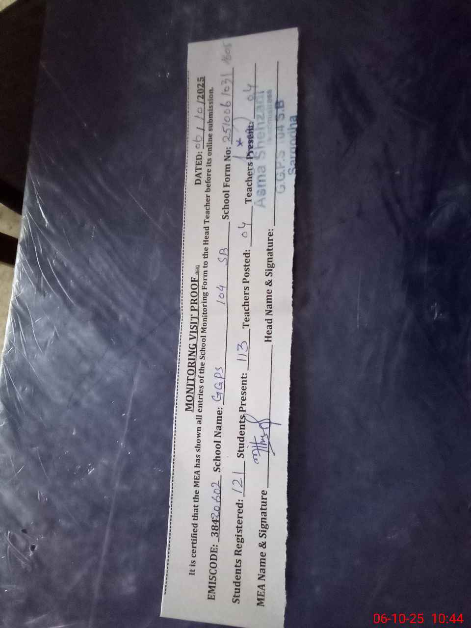 | Monitoring Date: 06-10-2025 | Start Time: 06-10-2025 10:31 AM | End Time: 06-10-2025 11:06 AM | Name of MEA: MU**** AH**** | |