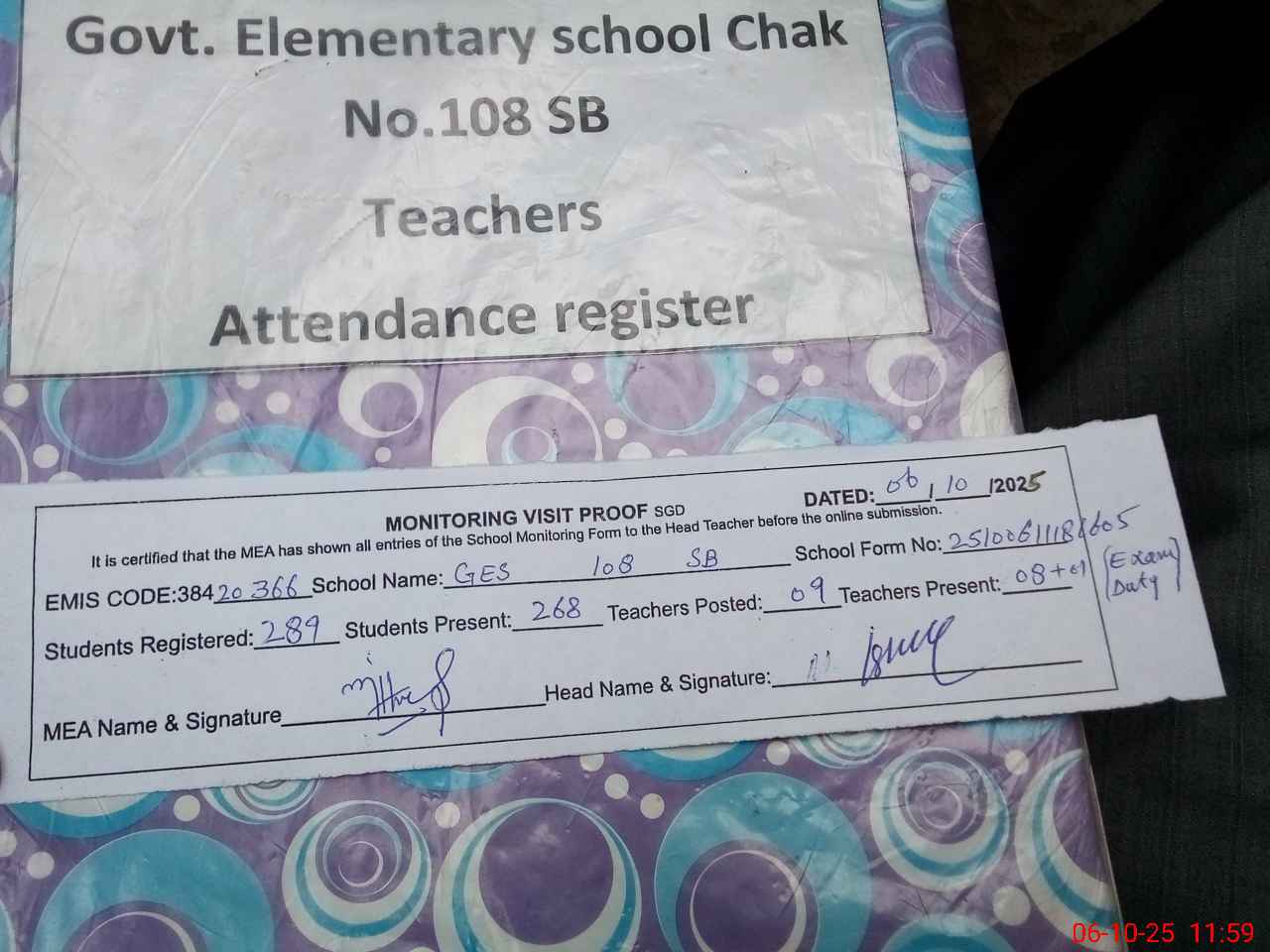 | EMIS Code: 38420366 | Name of School: GES CHAK NO.108 SB | |||