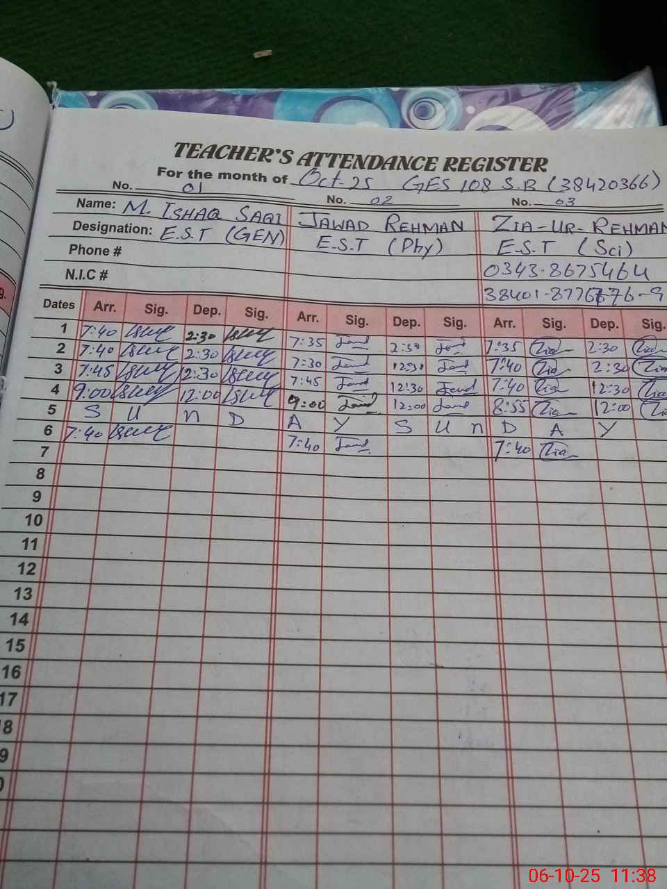 | 38**** | Ra**** Kh**** | EST | Regular | 0 | 0 | 0 | 0 | 0 | 0 | 0 | 0 | 0 | Exam Duty |