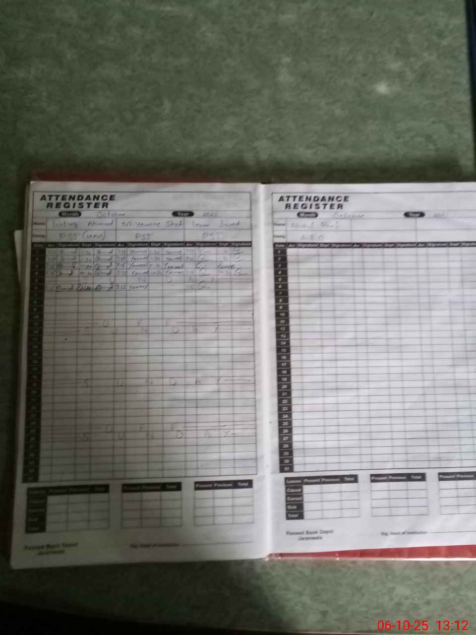 | CNIC | Full Name | Designation | R/C | Absence During Last Calender Month |