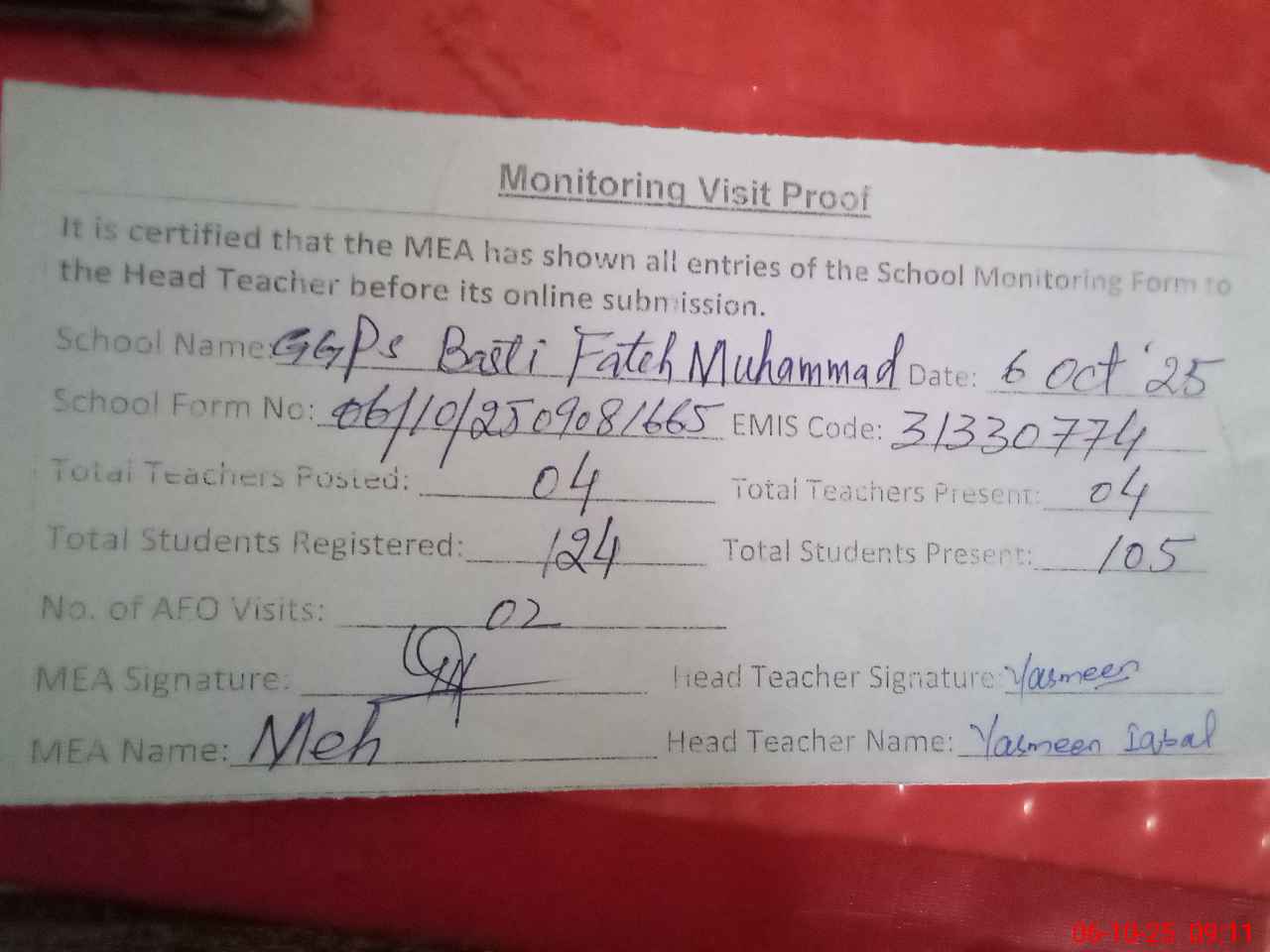 | EMIS Code: 31330774 | Name of School: GGPS BASTI FATEH MUHAMMAD | |||