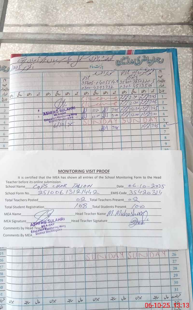 | EMIS Code: 35420314 | Name of School: GPS CHAK TALIAN | |||