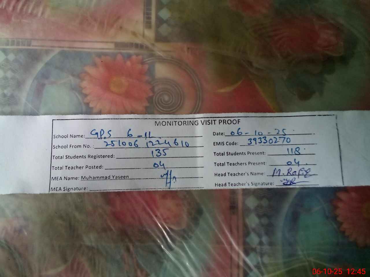 | EMIS Code: 39330270 | Name of School: GPS CHAK NO. 6/1-L | |||