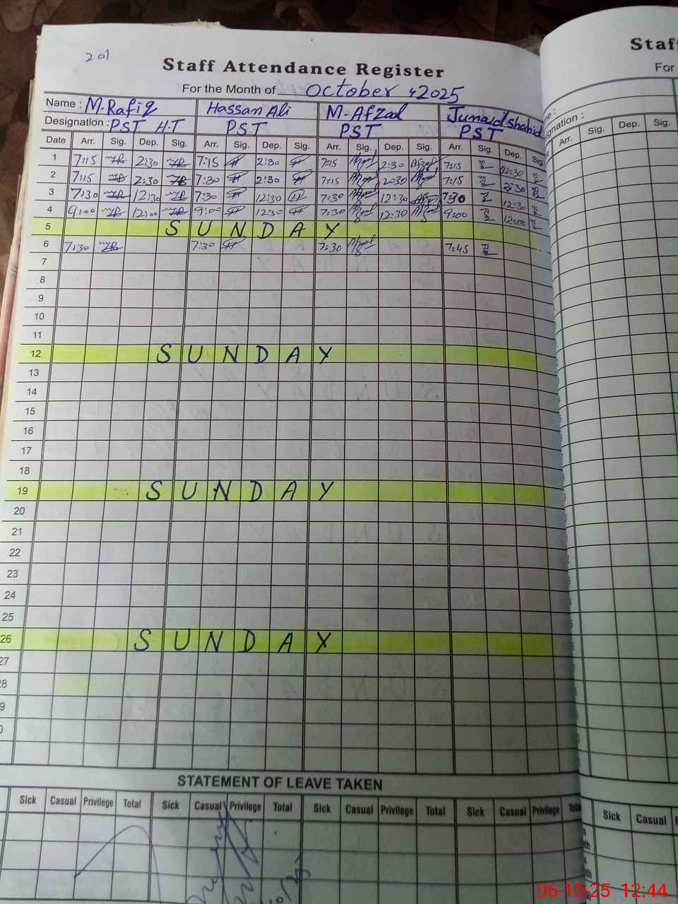 | Name: Mu**** Ra**** Designation: (School Headmaster's/Headmistress's) PST Phone/Cell Number: 03**** |