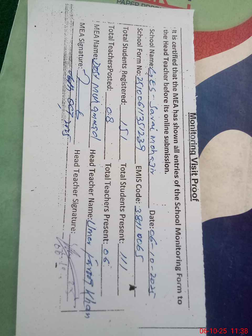 | EMIS Code: 38110065 | Name of School: GES SARAI MOHAJIR | |||