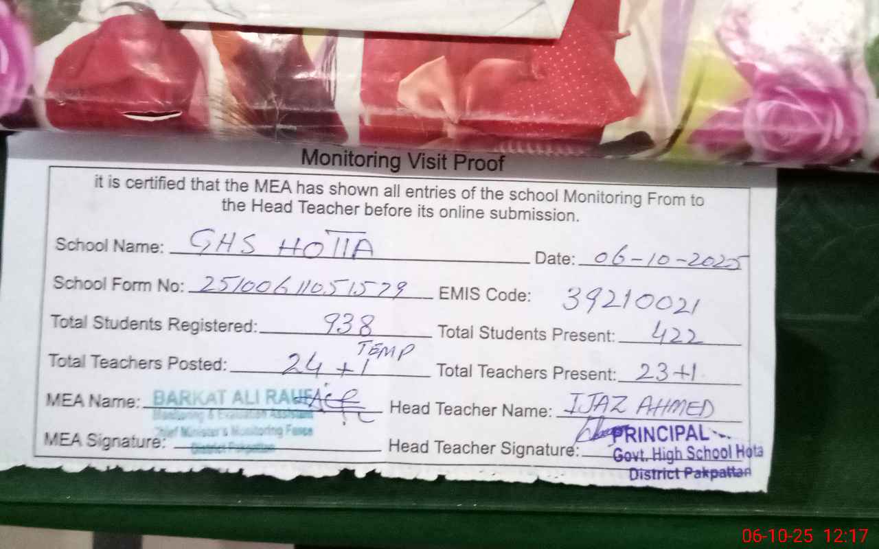 | EMIS Code: 39210021 | Name of School: GHS HOTTA | |||