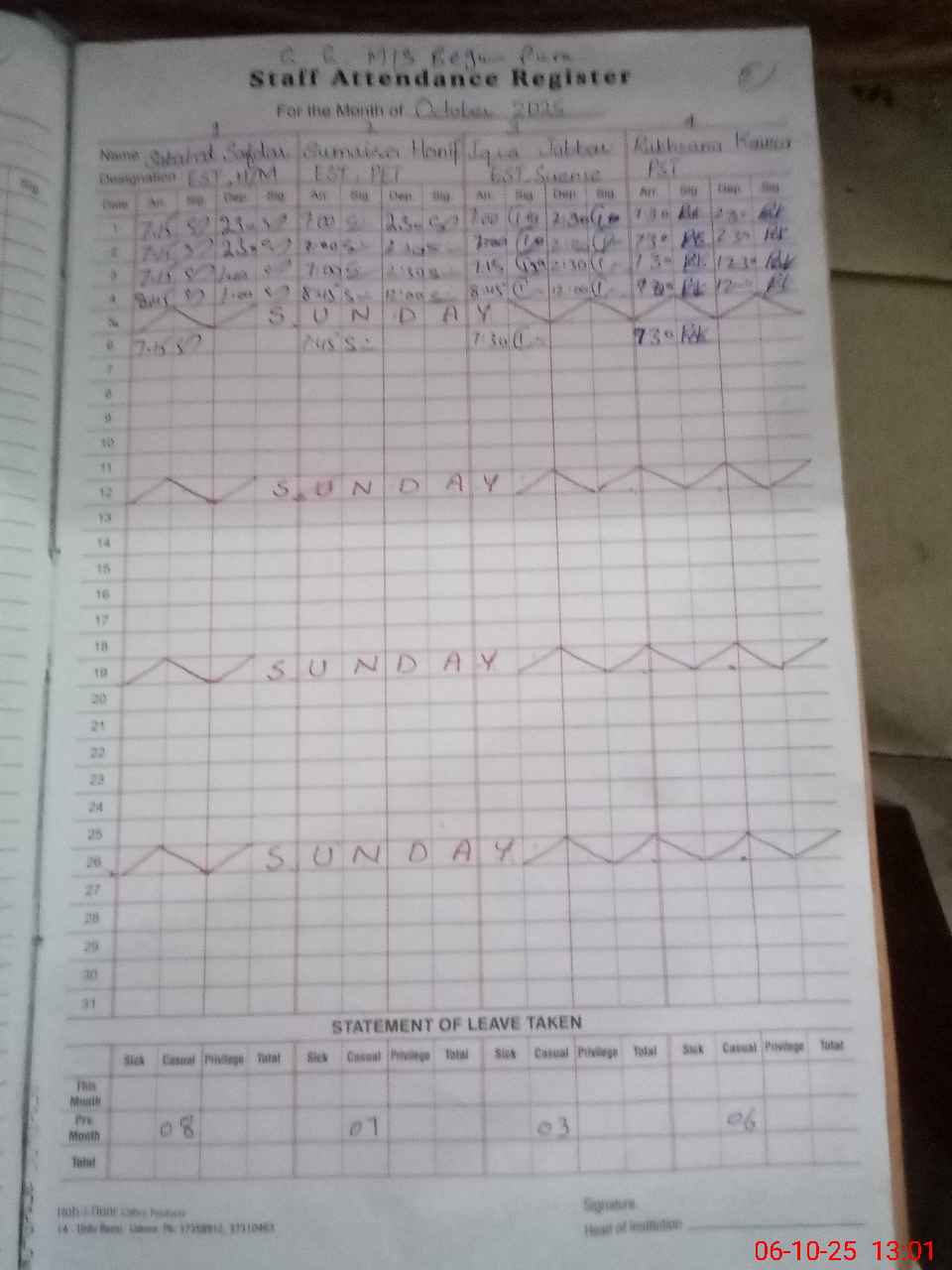 | 31**** | Ko**** Ja**** | PST | Regular | 2 | 0 | 22 | 0 | 0 | 0 | 0 | 0 | 2 | Absent (Un-Authorized) |