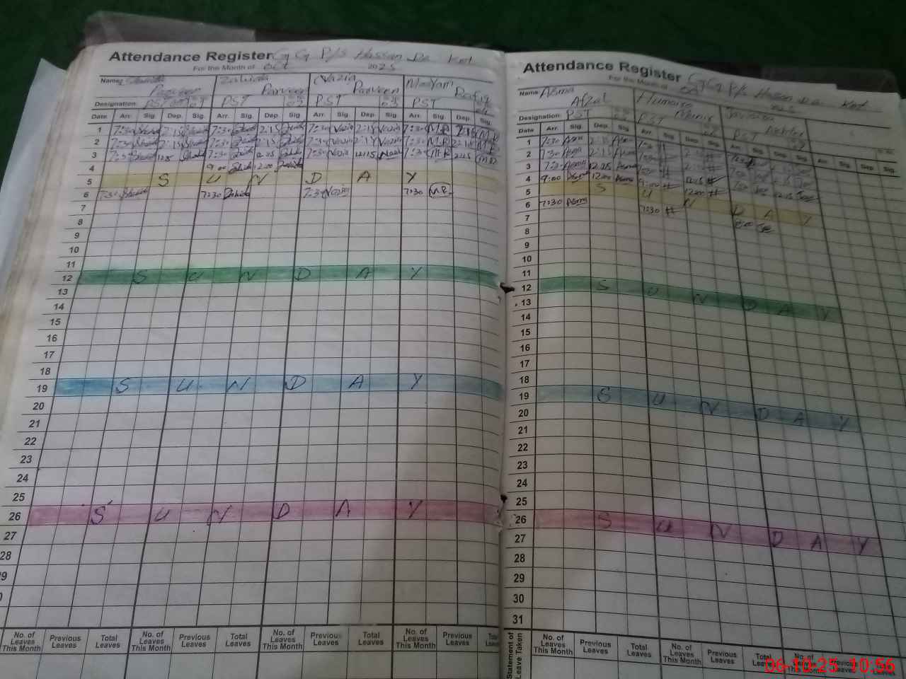 | CNIC | Full Name | Designation | R/C | Absence During Last Calender Month |
